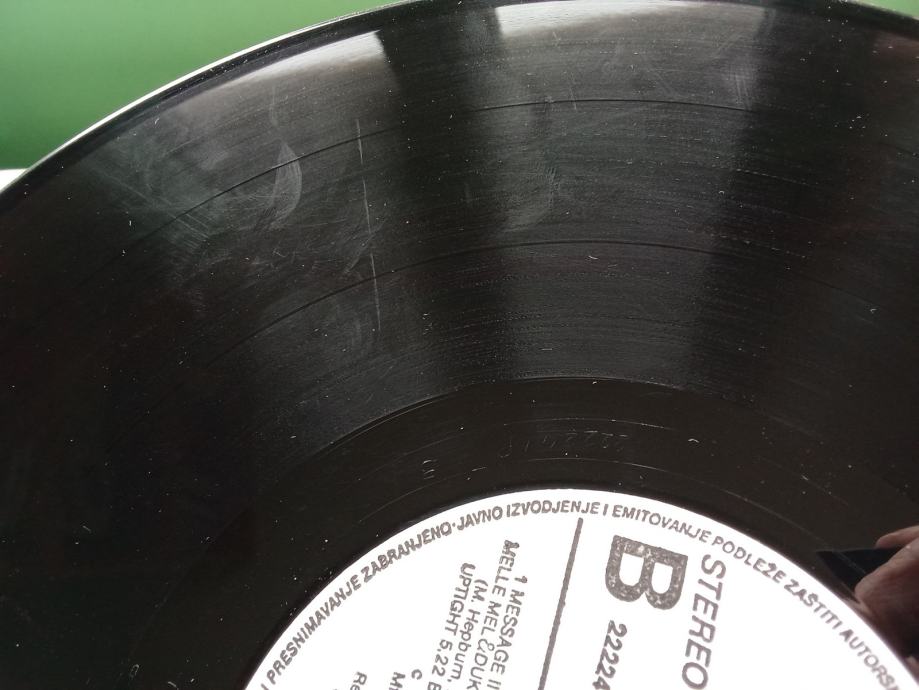 Pogledajte priložene fotografije oglašenog primjerka i YouTube video, koji sadrži iste fotografije veće razlučivosti i autentičnu snimku zvuka s početka prve strane, napravljenu amaterskom opremom. Ploča je u potpunosti slušana neposredno prije oglašavanja, svira bez preskoka igle i stalno daje zvuk otprilike onakav kakav je u spomenutoj snimci, ovisno o kvaliteti opreme kojom se zvuk reproducira. Glede ogrebotina, postoje mnoge, sve su plitke i ne izazivaju glasno pucketanje. Uzdužna oštećenja brazdi nisu upadljiva, uzrokuju tiho pucketanje i jedva primjetnu distorziju zvuka. Rubovi omota nisu ni probijeni niti rascijepljeni.