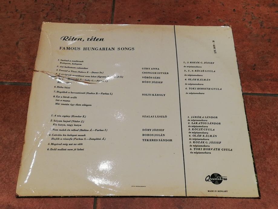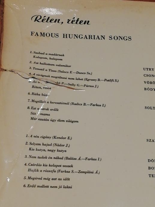 Reten, Reten, lp ploča, Poznate mađarske pjesme