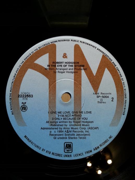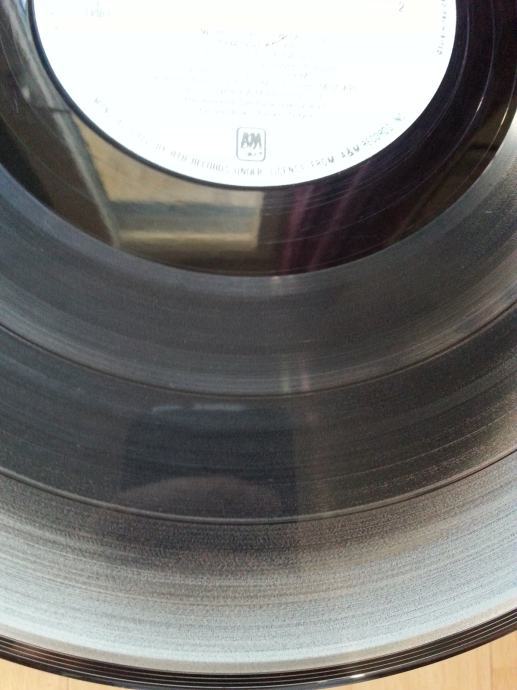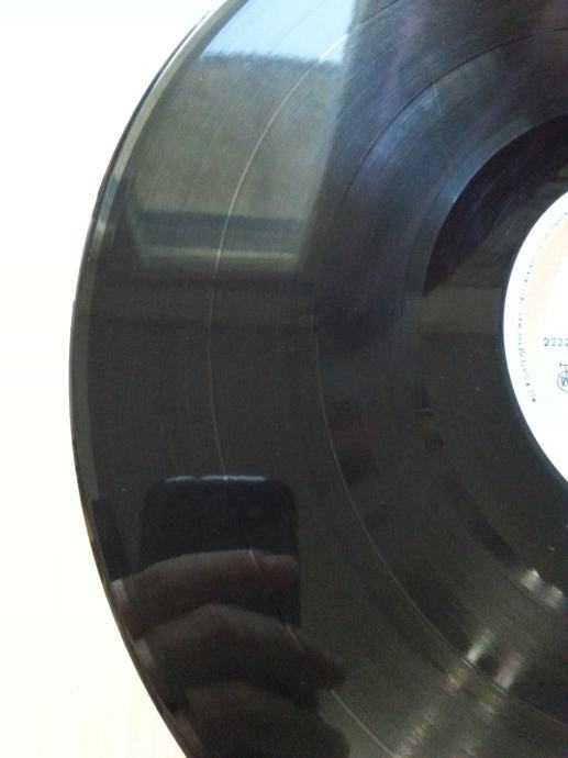 Vinil Vizualno: Labeli su jako čisti i uredni, bez tragova spindle weara te izgledaju kao novi. Ploča ima sjaj nove i djeluje jako uredno. Tek temeljitim pregledom na direktnom suncu sam uočio nekoliko jedva vidljivih površinskih frižića ala dlaka kose (slike 14), koji se ne mogu opipati pod prstom te ne utječu na samu reprodukciju. Vizualno je ploča Ex očuvana.