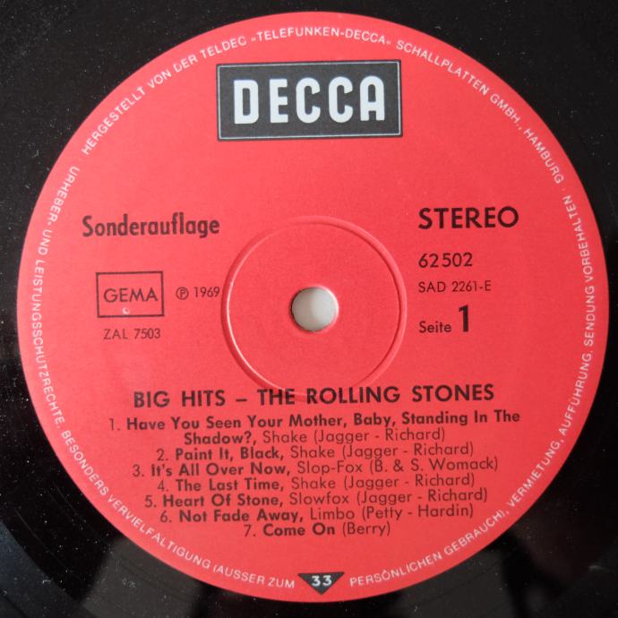 Rolling Stones – Big Hits (High Tide And Green Grass), German Press