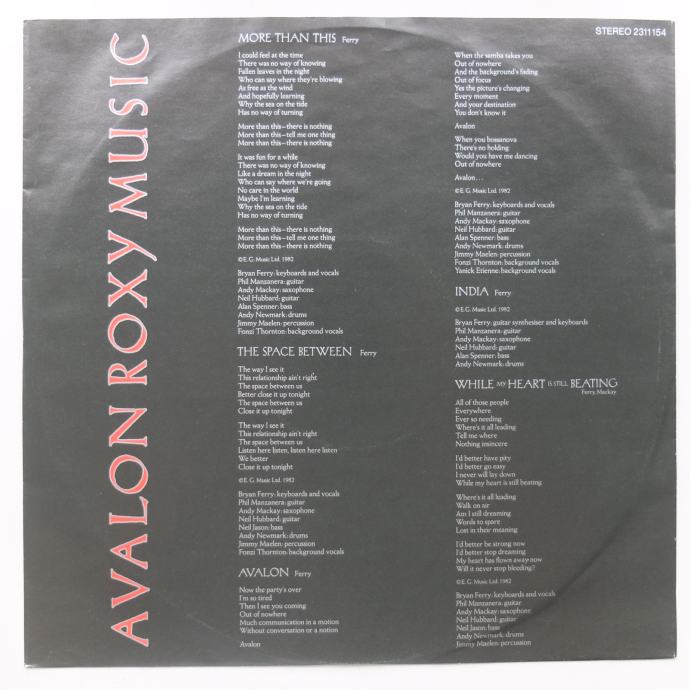 Prodajem gramofonsku LP ploču, Roxy Music – Avalon