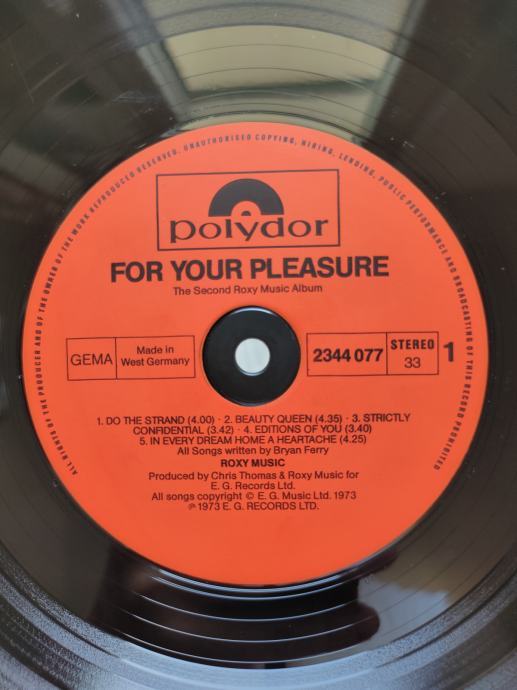 Roxy Music – For Your Pleasure, njemačko izdanje (70s)