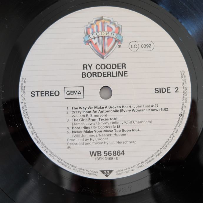 Prodajem gramofonsku LP ploču Ry Cooder – Borderline