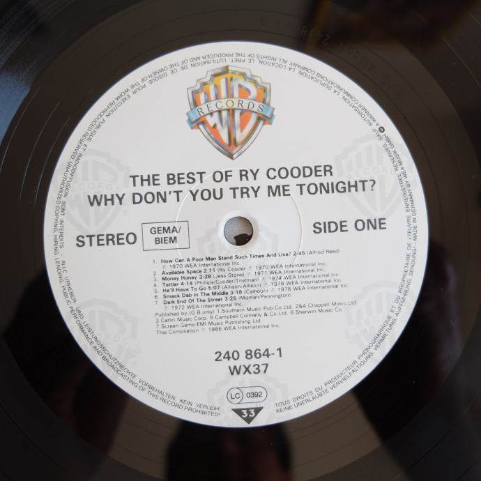 Prodajem gramofonsku LP ploču, Ry Cooder – Why Don't You Try Me Tonight? The Best Of Ry Cooder