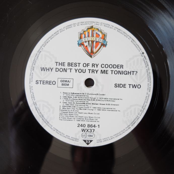 Prodajem gramofonsku LP ploču, Ry Cooder – Why Don't You Try Me Tonight? The Best Of Ry Cooder