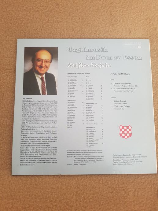 Gramofonska ploča , izvođača Željka Sojčića na orguljama. Orgelmusik im Dom zu Essen