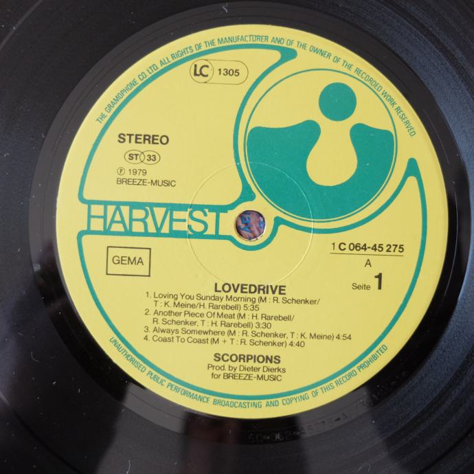 Izdavač Harvest Germany, godina izdanja 1979