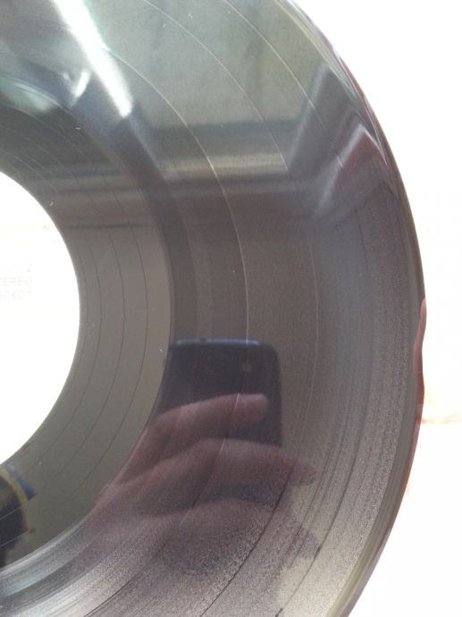 Vinil vizualno: Labeli su jako čisti i uredni, bez ikakvih tragova spindle weara te izgledaju kao novi. Ploča ima fantastičan sjaj i djeluje jako čista. Temeljitim pregledom sam uočio samo jedan jako sitan površinski frižić ala dlaka kose na A strani (slika 13) koji nema nikakav utjecaj na zvuk. Ploča izgleda fantastično očuvana!