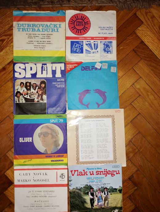 1. Dubrovački trubaduri - mi smo dečki kaj pijemo stoječki (sa Oliverom D.) = 2 € ; PROARTE - dolina našeg djetinjastva = 2 € ; more ; samo simpatija (originalna pjesma sa Meri Cetinić) = 2 € ; delfini - prijateljstvo ( = 2 €) ; OLIVER - vjeruj u ljubav = 2 € ; lijepa naša = 2 € ; Gaby Novak - maškare (2 €) ; Vlak u snijegu (pjesme) = 2 € ( svih 8 = 12 €)