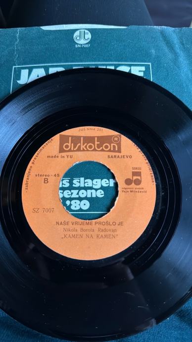 Prodajem singlicu grupe Kamen na kamen s pjesmama "Naše vrijeme prošlo je" i "Jaranice". Ploča je iz sezone '80 u originalnom izdanju Diskotona, savršeno očuvana.