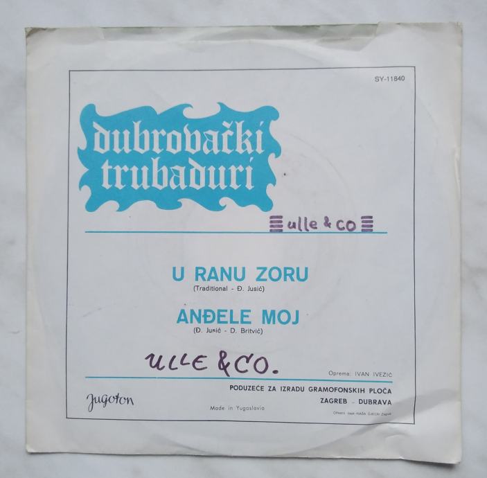 Singlica Zr Dubrovački trubaduri – U ranu zoru / Anđele moj