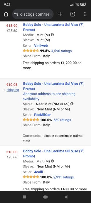 Una lacrima sul vidi Bobby Solo srl 10.3338 15eur.