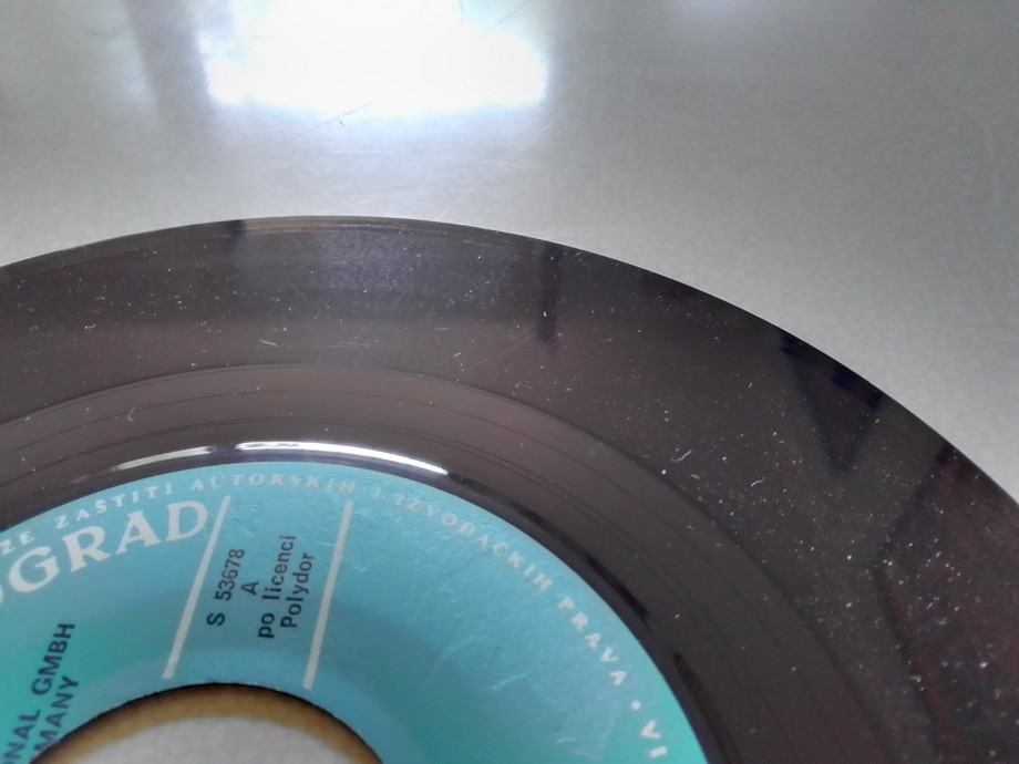 Pogledajte priložene fotografije oglašenog primjerka i YouTube video, koji sadrži iste fotografije veće razlučivosti i autentičnu snimku zvuka s početka prve strane, napravljenu amaterskom opremom. Ploča je u potpunosti poslušana, svira bez preskoka igle i daje zvuk otprilike onakav kakav je u spomenutoj snimci, ovisno o kvaliteti opreme kojom se zvuk reproducira. Glede ogrebotina, sve su neupadljive, plitke i ne utječu na zvuk. Svo tiho pucketanje, šum i umjerena distorzija koji se čuju u snimci uzrokovani su uzdužnim oštećenjima u brazdama. Ostalo o stanju oglašenog predmeta govore fotografije i video.