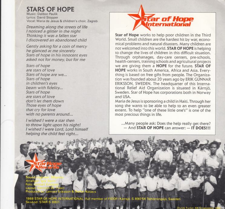 STARS OF HOPE MARIA DE JESUS TREŠNJEVAČKI MALIŠANI ZAGREB SINGL PLOČA