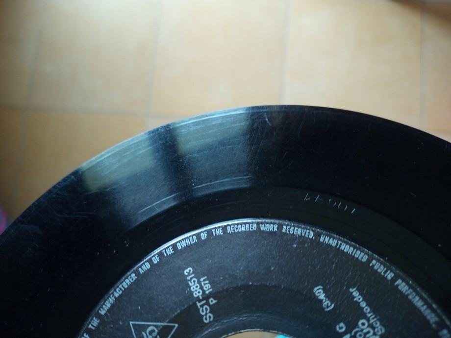 Pogledajte priložene fotografije oglašenog primjerka i YouTube video, koji sadrži iste fotografije veće razlučivosti i autentičnu snimku zvuka s početka prve strane, napravljenu amaterskom opremom. Ploča je u potpunosti poslušana, svira bez preskoka igle i stalno daje zvuk otprilike onakav kakav je u spomenutoj snimci, ovisno o kvaliteti opreme kojom se zvuk reproducira. Glede ogrebotina na ploči, postoje mnoge, ali sve su neupadljive, vidljive samo pod nekim kutom promatranja i sve su bezutjecajne na zvuk. Oštećenja brazdi su mjestimično upadljiva, uzrokuju tiho pucketanje i umjerenu distorziju zvuka. Ostalo o stanju predmeta govore priložene fotografije i video.