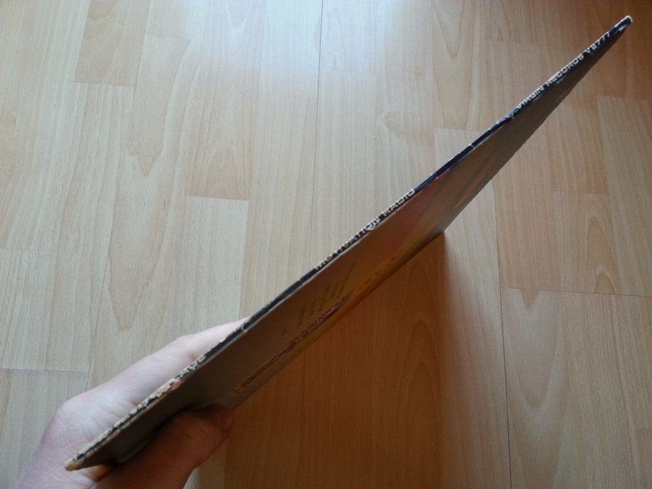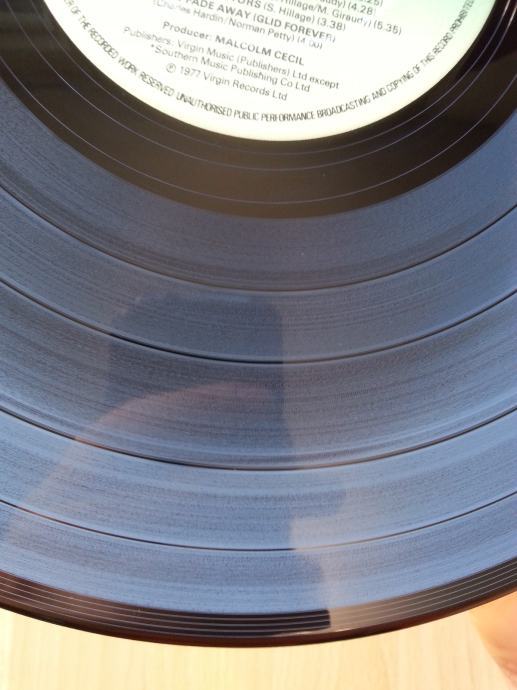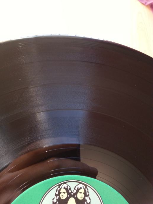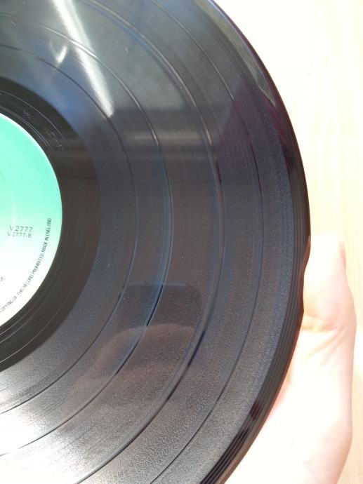 Vinil vizualno: Labeli su jako čisti i uredni bez ikakvih tragova spindle weara. Ploča ima fantastičan sjaj. Temeljitim pregledom nisam uočio nikakve dublje friževe. Na A strani je prisutan jedan frižić te nekoliko njih na B strani (slike 14 i 20), svi su površinski te se ne mogu opipati pod prstom. Vizualno ploča izgleda Vg+ očuvana.