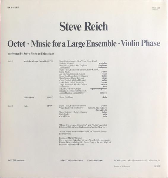 STEVE REICH – Octet • Music For A Large Ensemble • Violin Phase