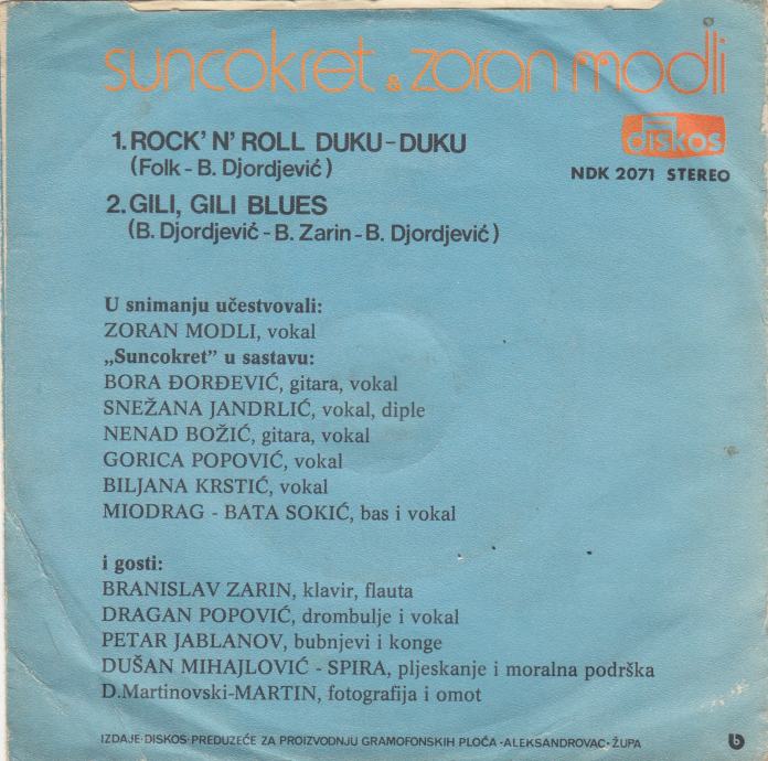 SUNCOKRET ZORAN MODLI B. ĐORĐEVIČ ROCK'N' ROLL SINGL GRAMOFONSKA PLOČA