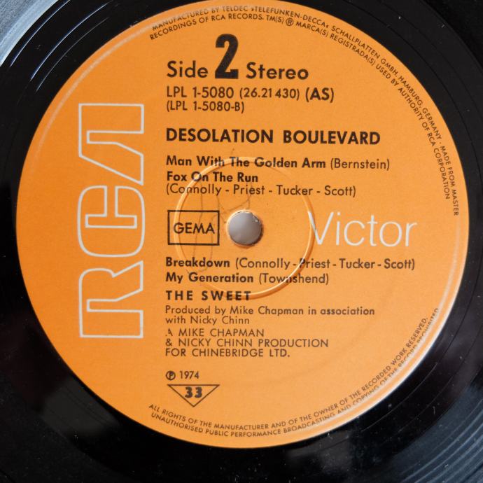 Prodajem gramofonsku LP ploču, Sweet – Desolation Boulevard