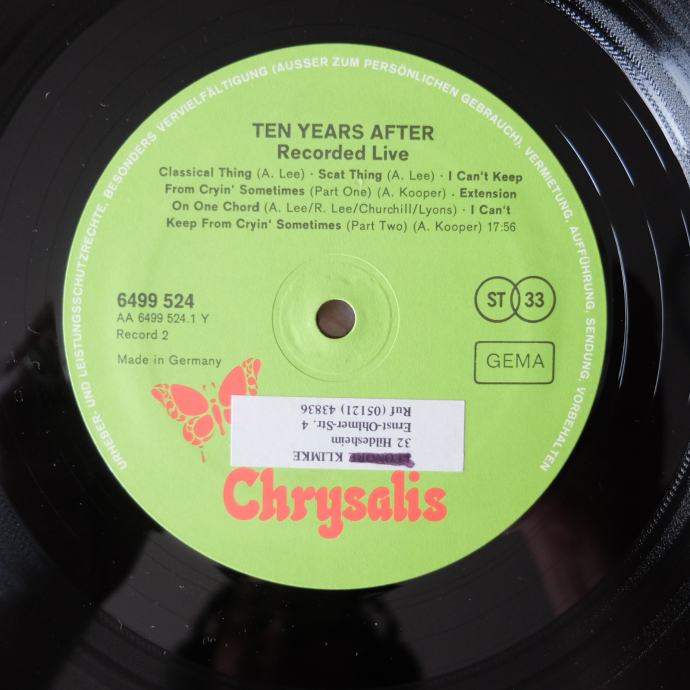 Ten Years After – Recorded Live, dupli LP, German Pressung