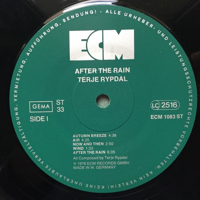 Terje Rypdal – After The Rain, gramofonska ploča, ECM 1976., Njemačka