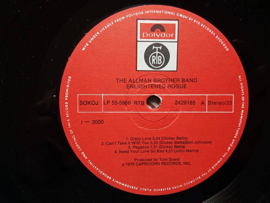 The Allman Brothers Band – Enlightened Rogues, LP ploča PGP RTB 1979.