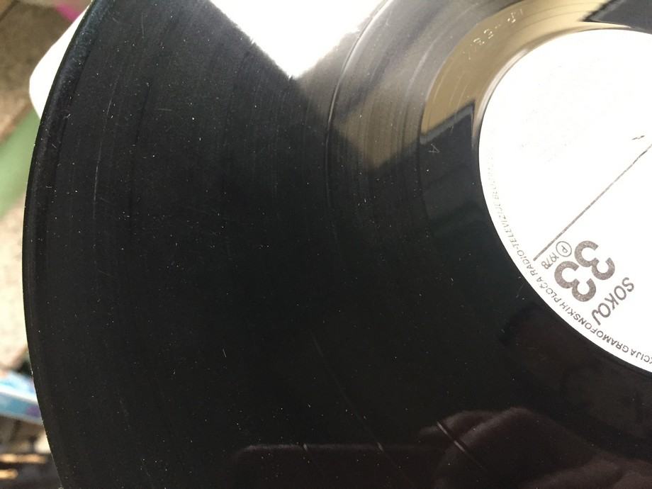 Pogledajte priložene fotografije oglašenog primjerka i YouTube video, koji sadrži iste fotografije veće razlučivosti i autentičnu snimku zvuka s početka prve strane, napravljenu amaterskom opremom. Ploča je u potpunosti poslušana, svira bez preskoka igle i daje zvuk otprilike onakav kakav je u spomenutoj snimci, ovisno o kvaliteti opreme kojom se zvuk reproducira. Glede ogrebotina, u sjeni su sve neupadljive, sve su plitke i ne utječu na zvuk. Uzdužna oštećenja brazdi nisu upadljiva, uzrokuju vrlo tiho pucketanje i jedva primjetnu distorziju zvuka. Rubovi omota nisu probijeni. Ostalo o stanju oglašenog predmeta govore fotografije i video.