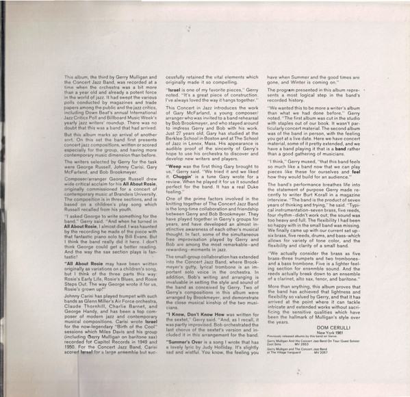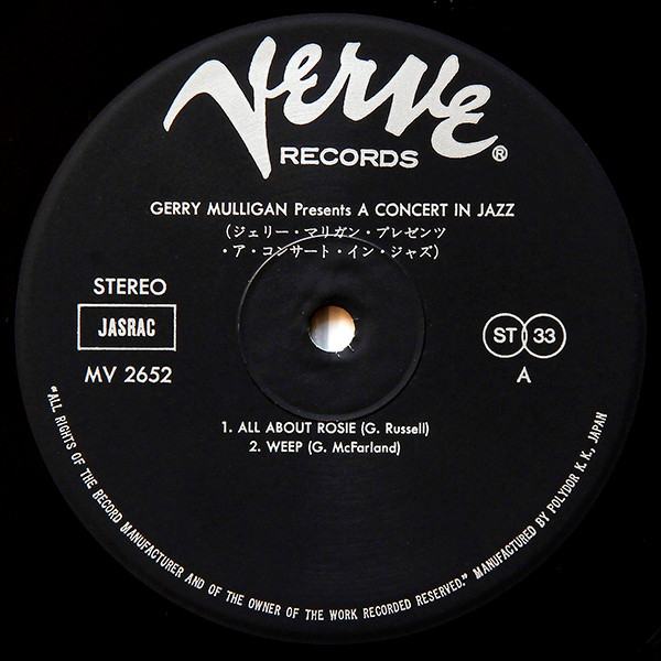 Gerry Mulligan And The Concert Jazz Band (Japan press)