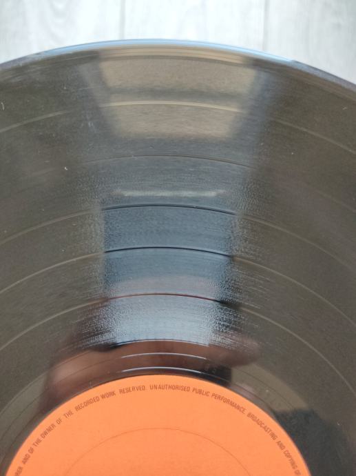 Ploča vizualno: Labeli su jako čisti i uredni, bez ikakvih tragova spindle weara i izgledaju kao novi. Ploča ima odličan sjaj i djeluje jako čisto i uredno bez nekih većih friževa koji bi se mogli opipati pod prstom ili frižića. Tek temeljitim pregledom na direktnom svjetlu sam uočio da ploča ima više onih najsitnijih crtica koje se u uvjetima normalne osvijetljenosti ni ne vide već samo kao refleksije na direktnom svjetlu te ne utječu na samu reprodukciju. Vizualno ploča izgleda Ex očuvana.