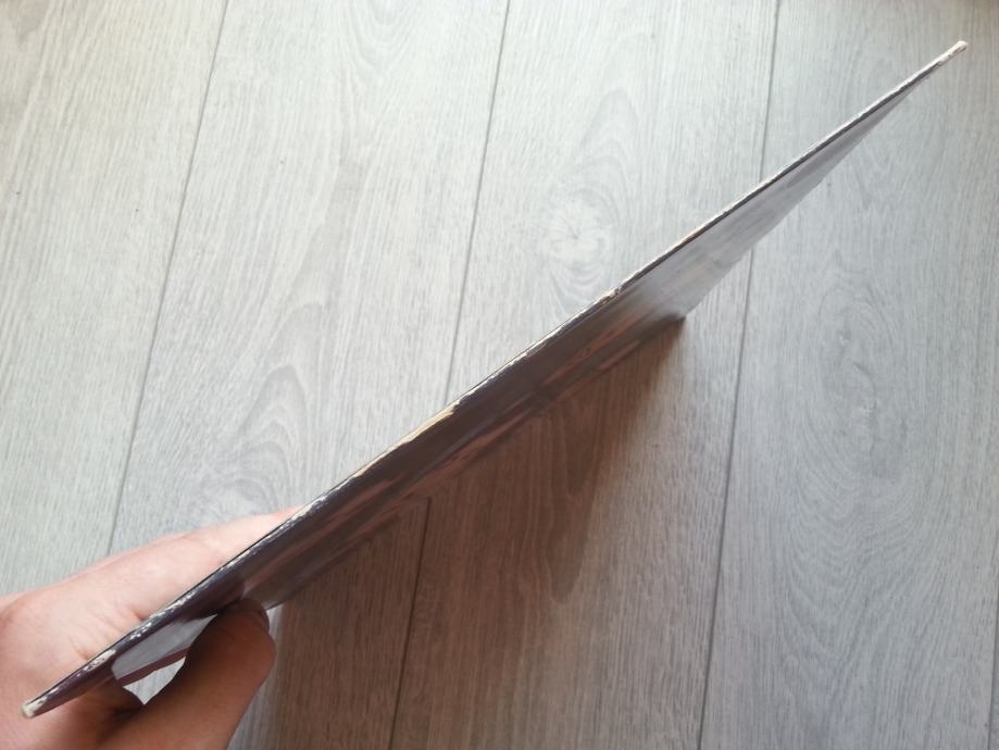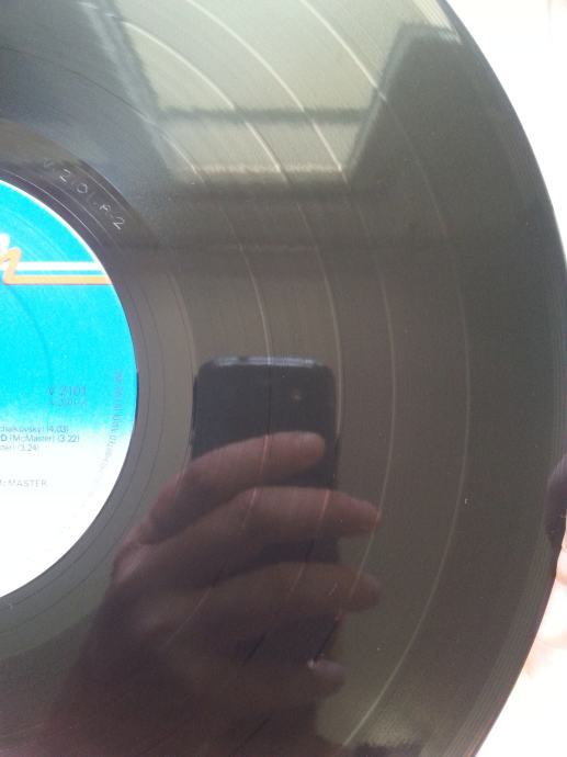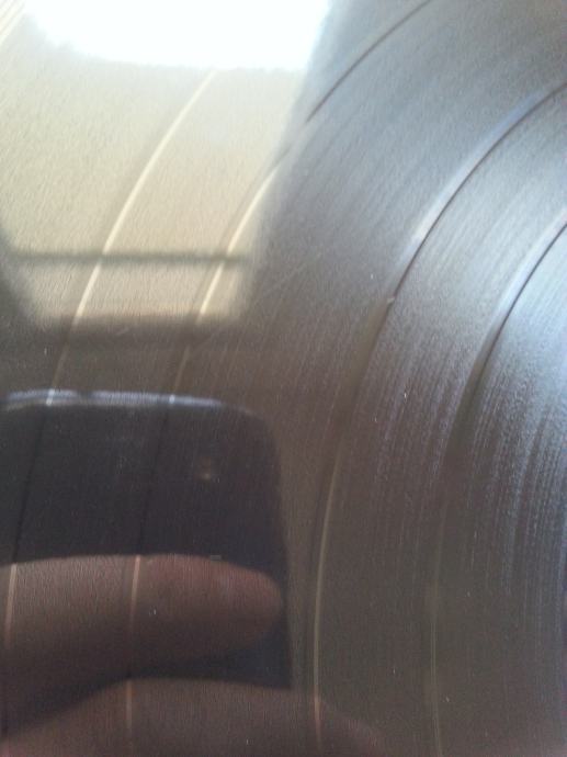 Ploča vizualno: Labeli su jako čisti i uredni, bez ikakvih tragova spindle weara. Ploča ima sjaj nove i djeluje jako čisto i uredno bez ikakvih dubljih friževa.. Tek temeljitim pregledom na jakom svjetlu sam uočio po par jedva vidljivih površinski frižića na obe strane (slike 13 i 19) i nešto baš malo onih najsitnijih crtica nastalih od vađenja iz papirnatog innera koje se u uvjetima normalne osvijetljenosti ni ne vide već samo kao refleksije na direktnom svjetlu, te ne utječu na samu reprodukciju. Vizualno ploča izgleda Ex očuvana.