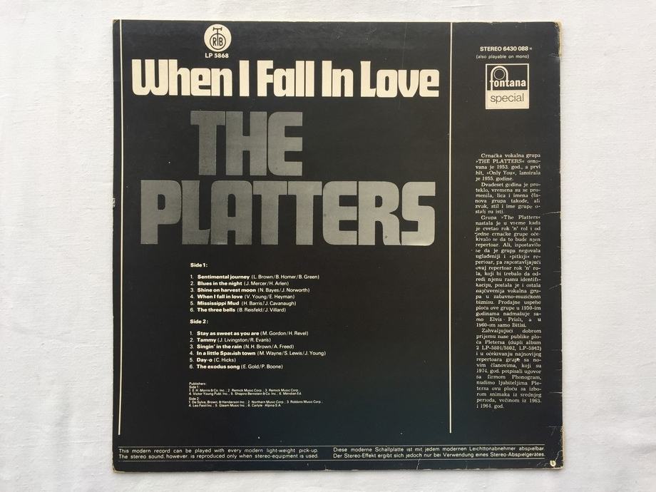 The Platters – When I Fall In Love, gramofonska ploča, PGP RTB