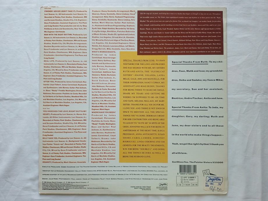 The Pointer Sisters – Right Rhythm, gramofonska ploča, Jugoton 1991.
