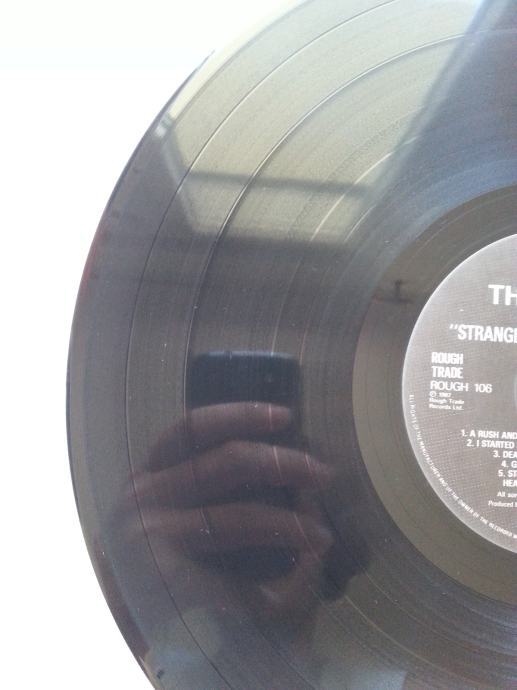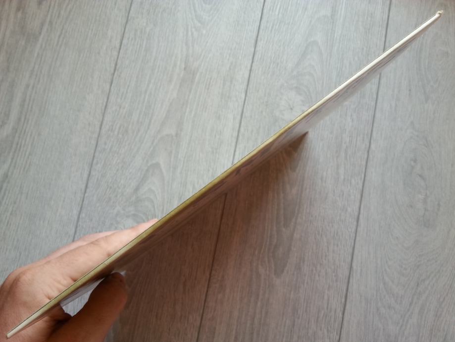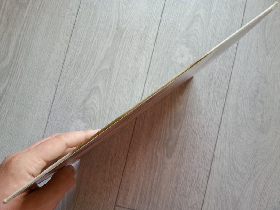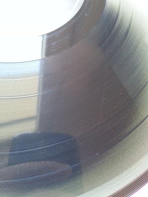 Ploča vizualno: Labeli su jako čisti i uredni, bez ikakvih tragova spindle weara. Ploča ima sjaj nove i djeluje jako čisto i uredno bez ikakvih dubljih friževa. Tek temeljitim pregledom na jakom svjetlu sam uočio par jedva vidljivih površinskih frižića na B strani (slika 13) i nešto malo onih najsitnijih crtica nastalih od vađenja iz papirnatog innera koje se u uvjetima normalne osvijetljenosti ni ne vide već samo kao refleksije na direktnom svjetlu. Vizualno ploča izgleda Ex očuvana.