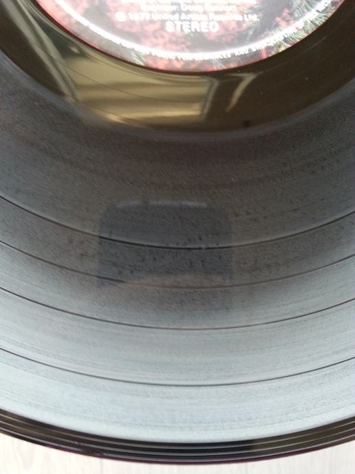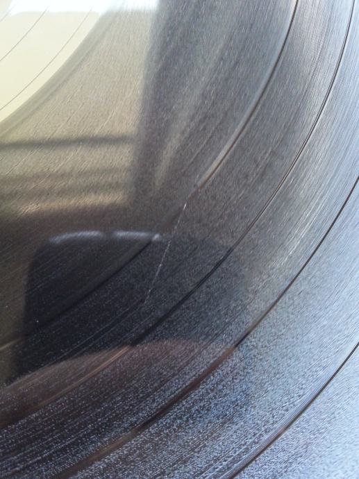 Ploča vizualno: Labeli su jako čisti, uredni i bez ikakvih tragova spindle weara. Ploča ima sjaj nove i djeluje jako čisto i uredno bez nekih dubljih friževa. Temeljitim pregledom sam uočio jedan sitan površinski frižić na B strani (slika 18) koji ne utječe na samu reprodukciju i nešto onih najsitnijih crtica nastalih od vađenja ploče iz papirnatog innera koje se u uvjetima normalne osvijetljenosti ni ne vide već samo kao refleksije na direktnom svjetlu. Vizualno ploča izgleda Ex očuvana.