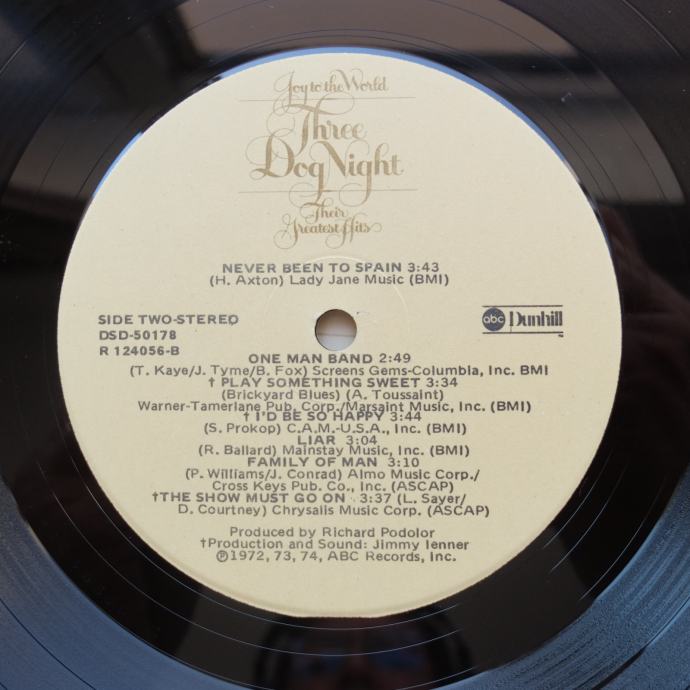 Three Dog Night – Joy To The World - Their Greatest Hits, US Press