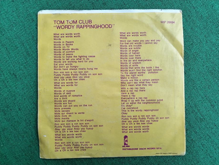 TOM TOM CLUB - WORDY RAPPINGHOOD - SINGL PLOČA