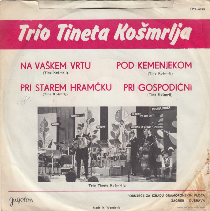 TRIO TINETA KOŠMRLJA NA VAŠKEM VRTU SINGL GRAMOFONSKA PLOČA SLOVENSKA