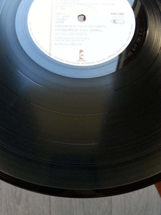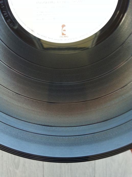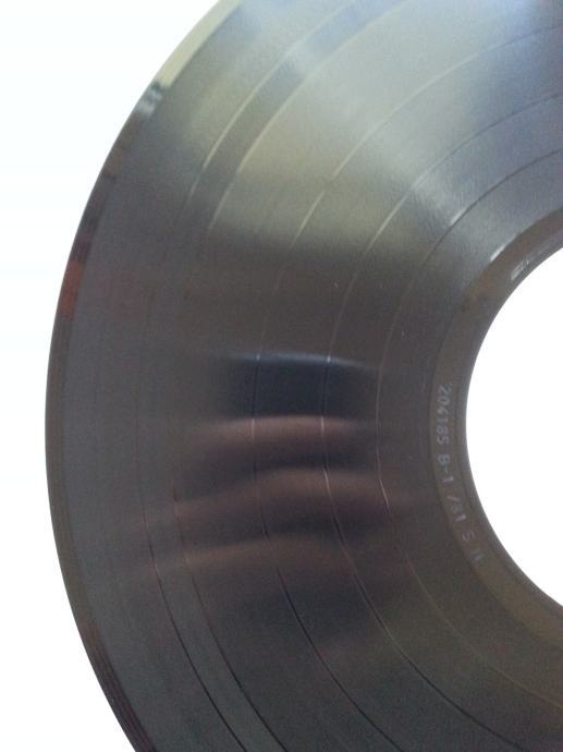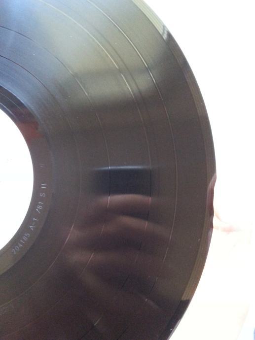 Ploča vizualno: Labeli su jako čisti i uredni, bez ikakvih tragova spindle weara. Ploča ima fantastičan sjaj i djeluje jako čisto i uredno bez ikakvih dubljih friževa. Tek temeljitim pregledom na jakom svjetlu sam uočio nekoliko onih najsitnijih površinskih frižića na A strani i jedan na B (slika 18) i više onih crtica nastalih od vađenja iz kartonskog innera koje se u uvjetima normalne osvijetljenosti ni ne vide već samo kao refleksije na direktnom svjetlu te ne utječu na samu reprodukciju. Vizualno ploča izgleda Vg+ očuvana.
