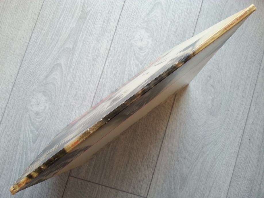 Ploča vizualno: Labeli su jako čisti, uredni i bez ikakvih tragova spindle weara i izgledaju kao novi. Ploča ima fantastičan sjaj i djeluje jako čisto i uredno bez ikakvih friževa ili frižića. Tek temeljitim pregledom sam uočio nešto onih najsitnijih crtica nastalih od vađenja ploče iz papirnatog innera koje se u uvjetima normalne osvijetljenosti ni ne vide već samo kao refleksije na direktnom svjetlu. Vizualno ploča izgleda Ex očuvana.
