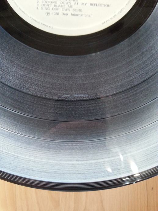 Ploča vizualno: Labeli su jako čisti i uredni, bez ikakvih tragova spindle weara te izgledaju kao novi. Ploča ima sjaj nove i djeluje jako čisto i uredno. Temeljitim pregledom na direktnom svjetlu sam uočio tek nekoliko jedva vidljivih površinskih frižića ala dlaka kose (slika 15) koji jedva da se uopće i vide te nemaju nikakav utjecaj na zvuk. Vizualno ploča izgleda Nm očuvana.