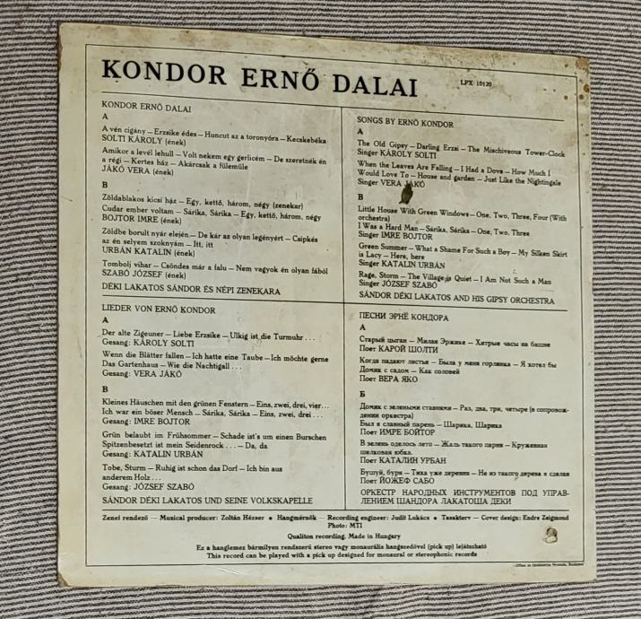 VARIOUS - HUNGARIAN SONGS - KONDOR ERNO DALAI