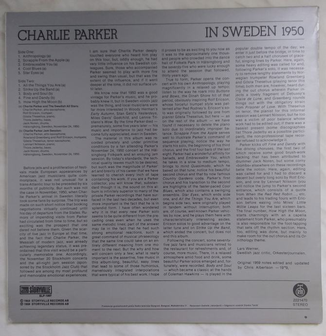 Vinyl LP Charlie Parker – In Sweden 1950