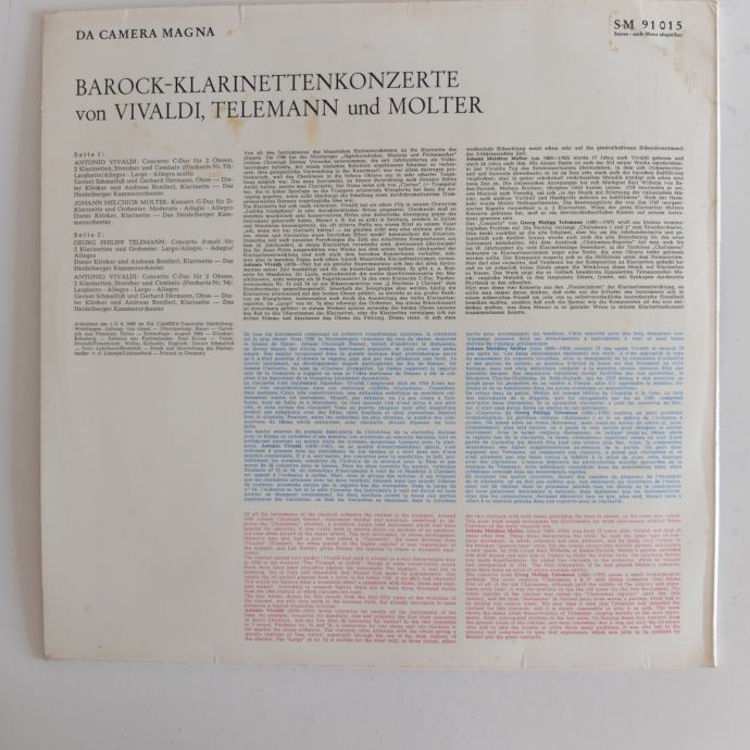 Prodajem gramofonsku LP ploču Vivaldi, Telemann Und Molter, Dieter Klöcker, Andreas Bonifert, Gernot Schmalfuss, Das Heidelberger Kammerorchester – Barock-Klarinettenkonzerte