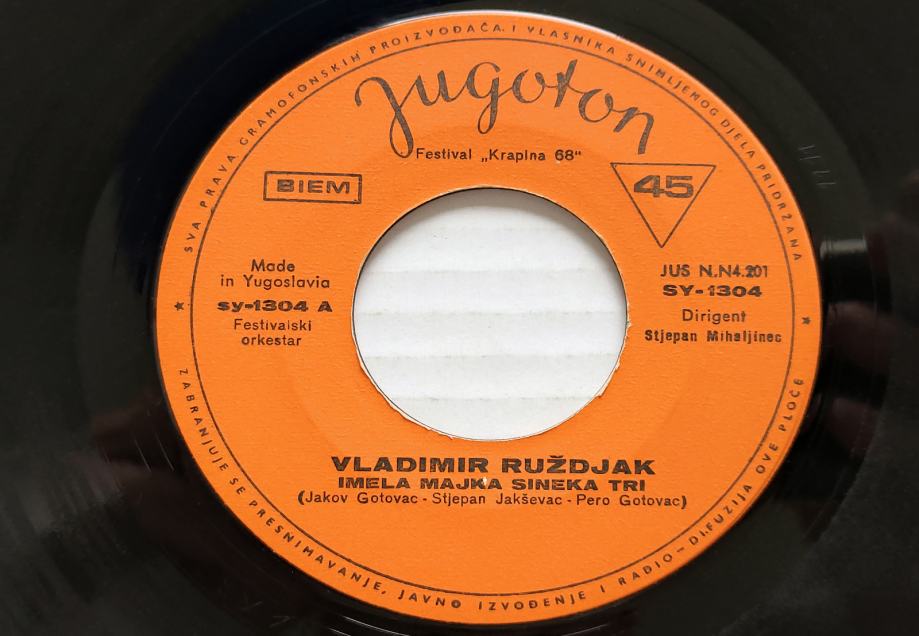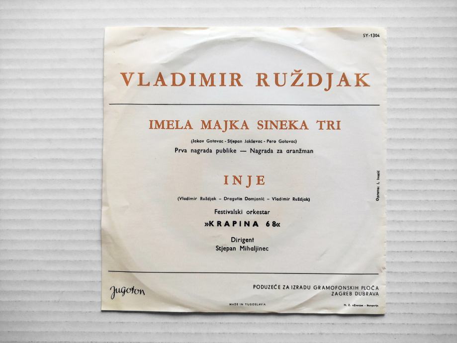 Vladimir Ruždjak - Imela Majka Sineka Tri / Inje (7", Single)