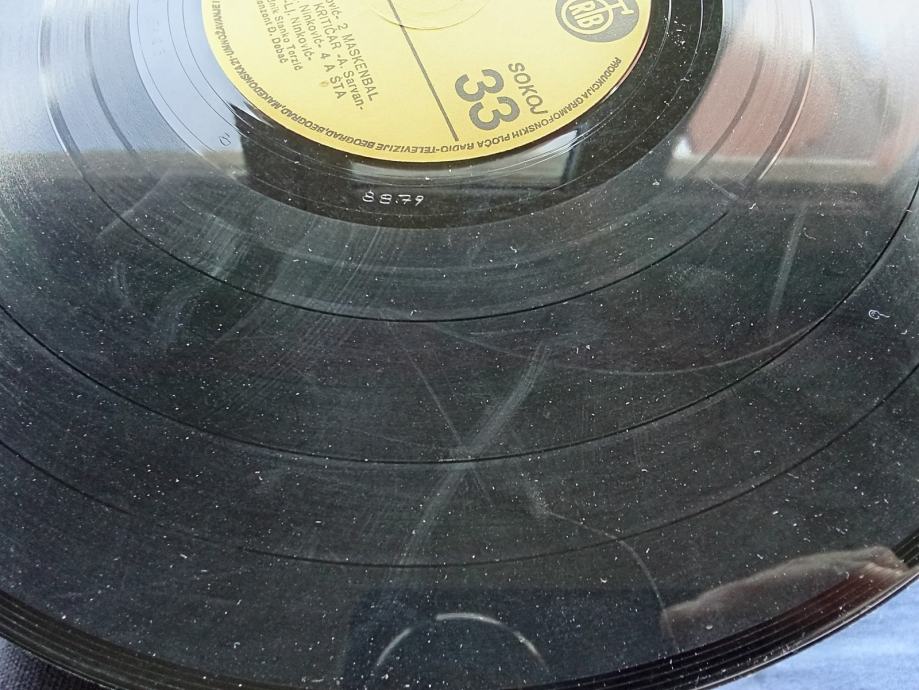 Pogledajte priložene fotografije oglašenog primjerka i YouTube video, koji sadrži iste fotografije veće razlučivosti, bolje prikazuje ploču nego fotografija priložena uz oglas i sadrži autentičnu snimku zvuka s početka prve strane, napravljenu amaterskom opremom. Ploča je u potpunosti slušana neposredno prije oglašavanja, svira bez preskoka igle i stalno daje zvuk otprilike onakav kakav je u spomenutoj snimci, ovisno o kvaliteti opreme kojom se zvuk reproducira. Na rubu ploče je radijalna pukotina duljine oko 5 cm, koja uzrokuje taj relativno glasan pucanj tijekom svakog okreta ploče na tanjuru, koji se također čuje u spomenutoj snimci. Zadnja fotografije prikazuje tu pukotinu. Glede ogrebotina, postoje mnoge, neke su upadljive, sve su plitke i ne izazivaju glasno pucketanje. Uzdužna oštećenja brazdi nisu upadljiva, uzrokuju tiho pucketanje i jedva primjetnu distorziju zvuka. Površina omota je mjestimično oderana, što je vrlo vjerojatno posljedica razdvajanja od susjednih omota, nakon što ih je spojila vlaga na polici bivšeg vlasnika. Rubovi omota nisu ni probijeni niti rascijepljeni.