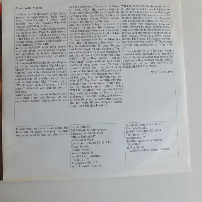 Prodajem gramofonsku LP ploču Willie Mabon – Chicago Blues Session!