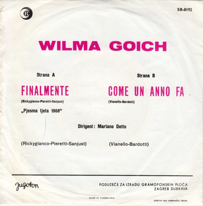 WILMA GOICH FINALMENTE / COME UN ANNO FA GRAMOFONSKA PLOČA