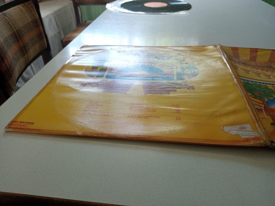 Pogledajte priloženi YouTube video, koji sadrži fotografije visoke razlučivosti oglašenog primjerka i autentičnu snimku zvuka s početka prve strane prve ploče, napravljenu amaterskom opremom. Sadržaj obiju ploča je u potpunosti poslušan, one sviraju bez preskoka igle i u svim predjelima daju zvuk kao što je taj u snimci. Na njima nema dubokih ogrebotina, ali postoje mnoge neupadljive ogrebotine kakve inače nastaju trenjem ploče uz omot i prašinu i vide se samo pod nekim kutom promatranja. Oštećenja brazdi uzrokuju stalno tiho pucketanje i povremenu distorziju zvuka, a mjestimično su i vidljiva pod nekim kutom promatranja. Na četvrtoj stranije jedna oksidacijska mrlja. U vlastitoj sjeni, ploče izgledaju kao nove. Fotografije priložene uz oglas i video govore više nego dovoljno o stanju predmeta.