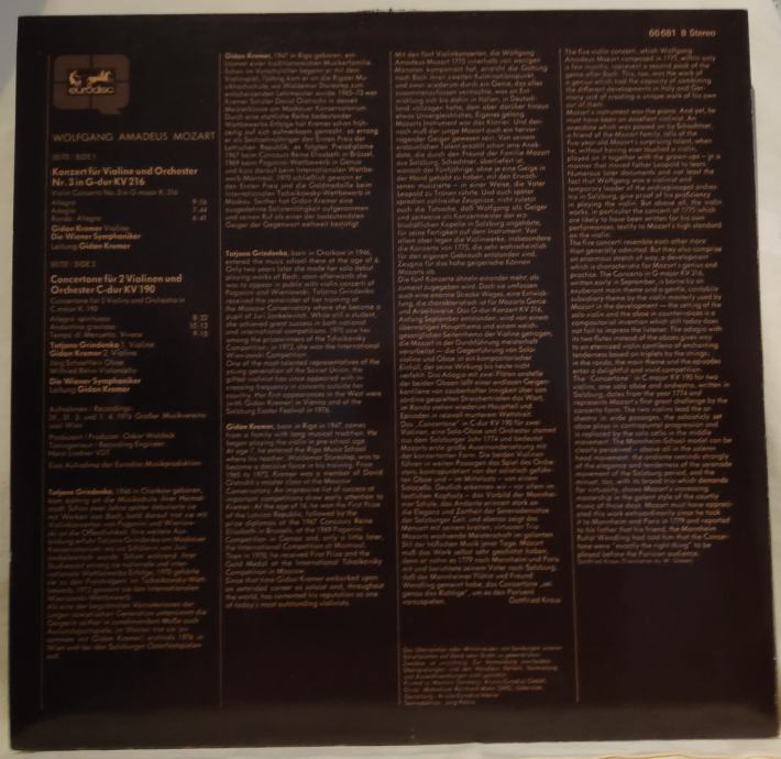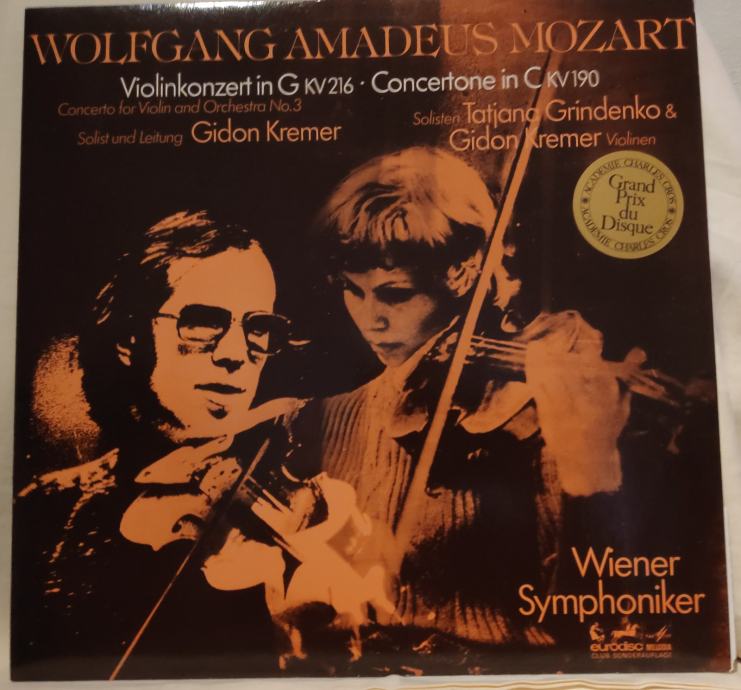 Tatjana Grindenko* - Gidon Kremer - Wolfgang Amadeus Mozart - Wiener Symphoniker – Violinkonzert In G KV 216- Concertone In C KV 190