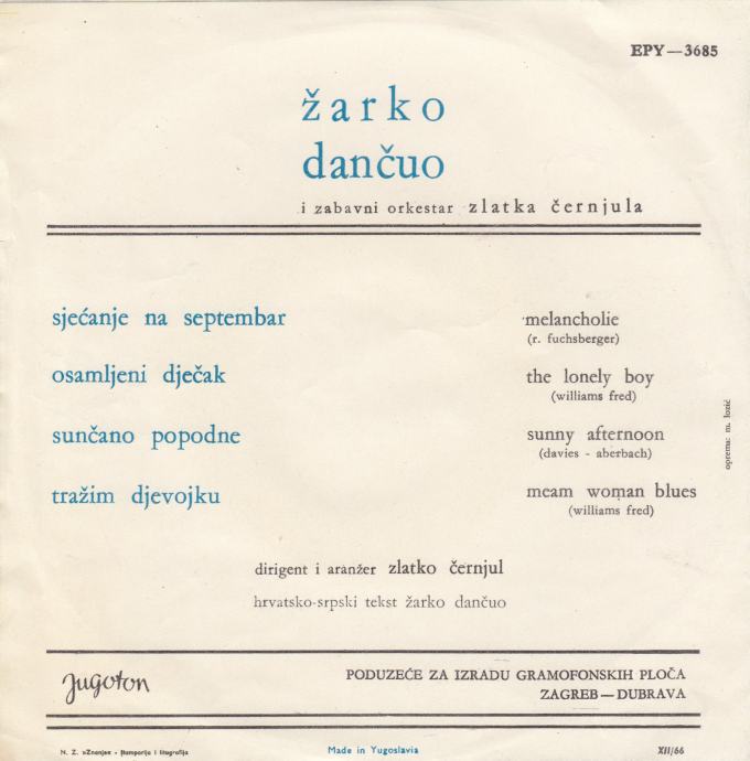 ŽARKO DANČUO SUNNY AFTERNOON THE KINKS SINGL GRAMOFONSKA PLOČA